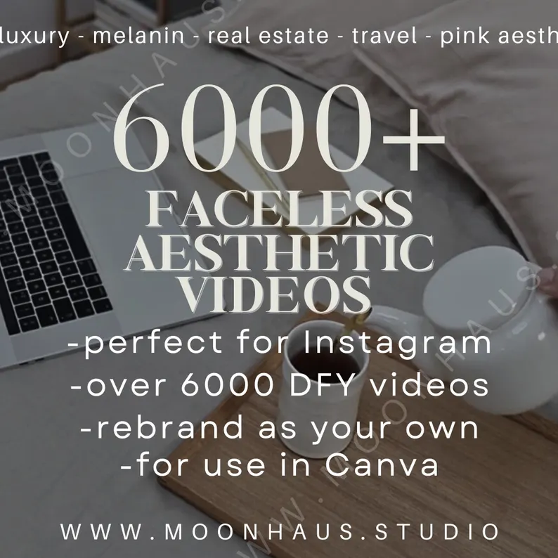 6000+ faceless aesthetic videos, ideal for Instagram Reels, Stories, & digital marketing with MRR (Master Resell Rights) and PLR. Use for affiliate marketing, email marketing, small business, & resale. Easy to edit in Canva, these DFY templates are ready to use! Includes is Luxury reels, Melanin reels, Real Estate reels, & Travel reels.