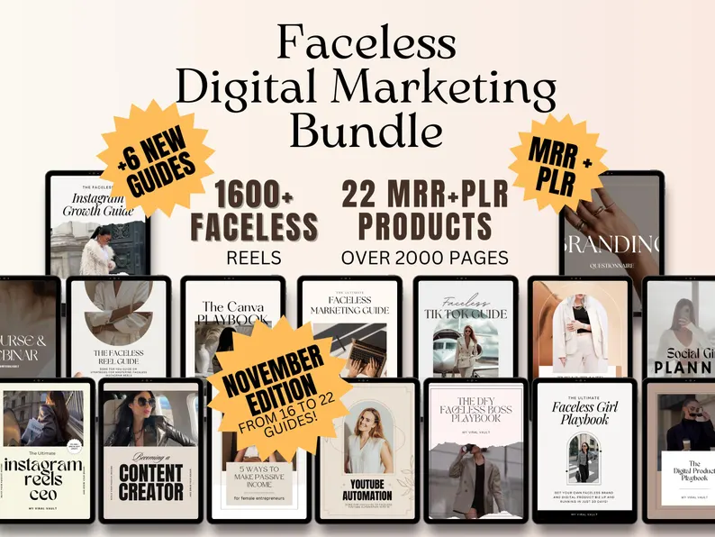 Faceless Digital Marketing Guide Bundle with Master Resell Rights Digital Marketing PLR Done For You Digital Marketing Guides with MRR DFY