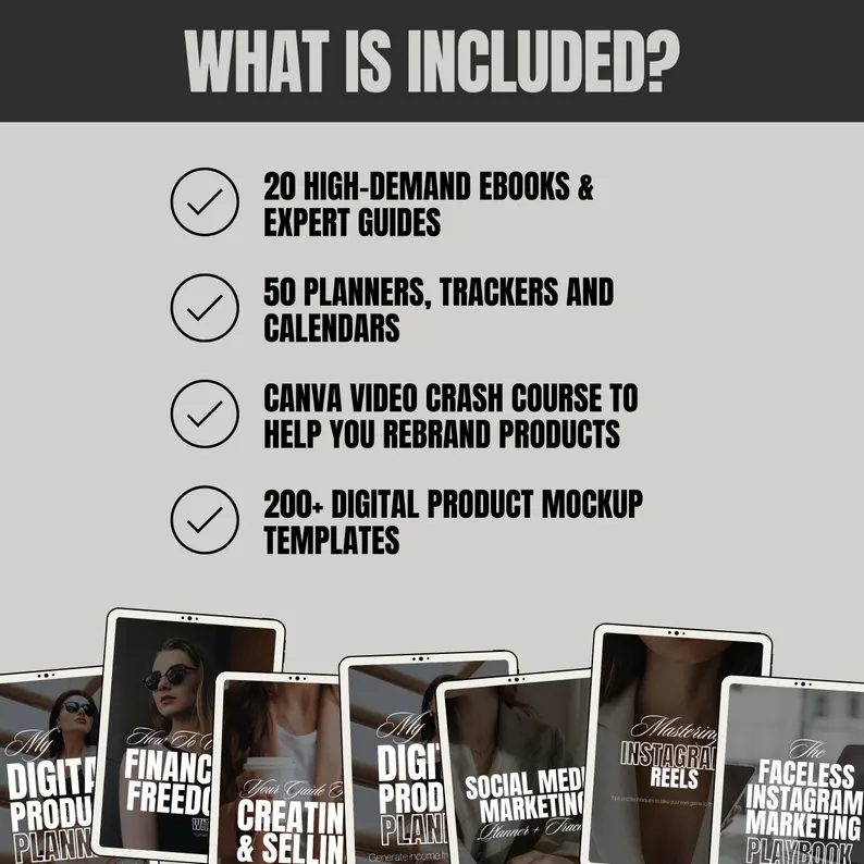 Expertly crafted to meet current market trends, these eBooks cover everything from financial freedom to faceless marketing, social media, and digital product mastery. You can resell them as-is or personalize them with your own brand for a unique product offering.