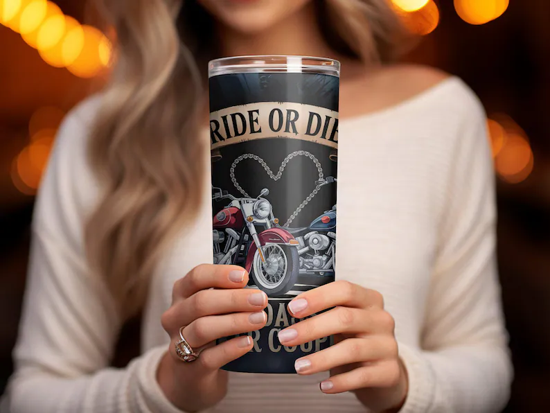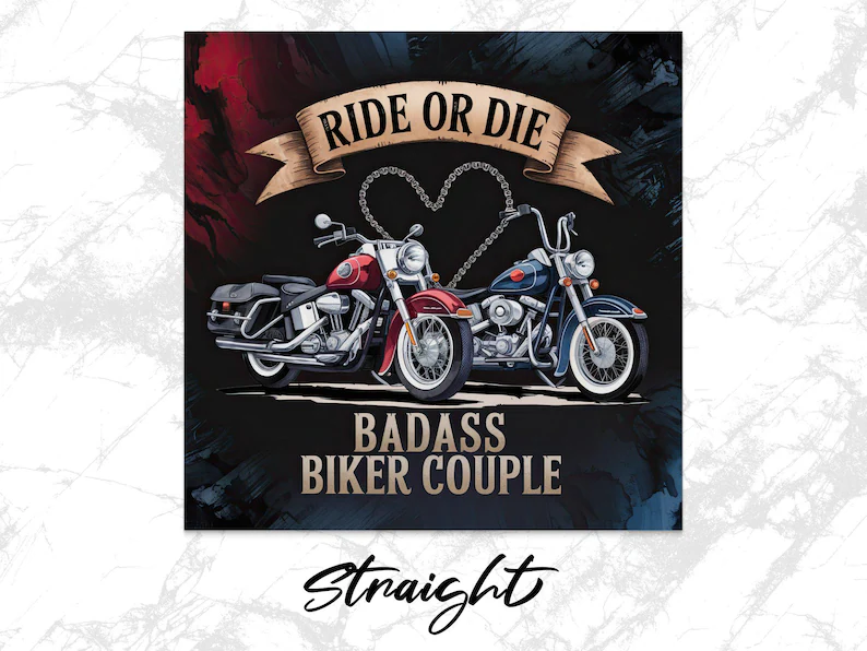 Embrace your inner biker spirit with this vibrant Ride or Die Badass Biker Couple digital tumbler design. Perfect for 20oz straight or tapered tumblers, this high-quality image highlights the thrill of the ride with its bold graphics. Ideal for personal use or commercial resale, this design ensures your tumbler stands out in any crowd. Downloadable and ready for use, it’s a must-have for motorcycle enthusiasts who want to showcase their passion in style.High-Resolution Tumbler wrap | 9.3 inches * 8.2 inches | 300 DPI | Digital Artwork for DIY Projects, Crafts & Commercial Use |
